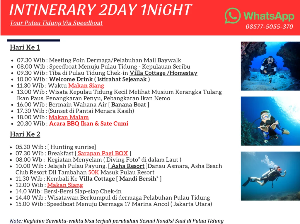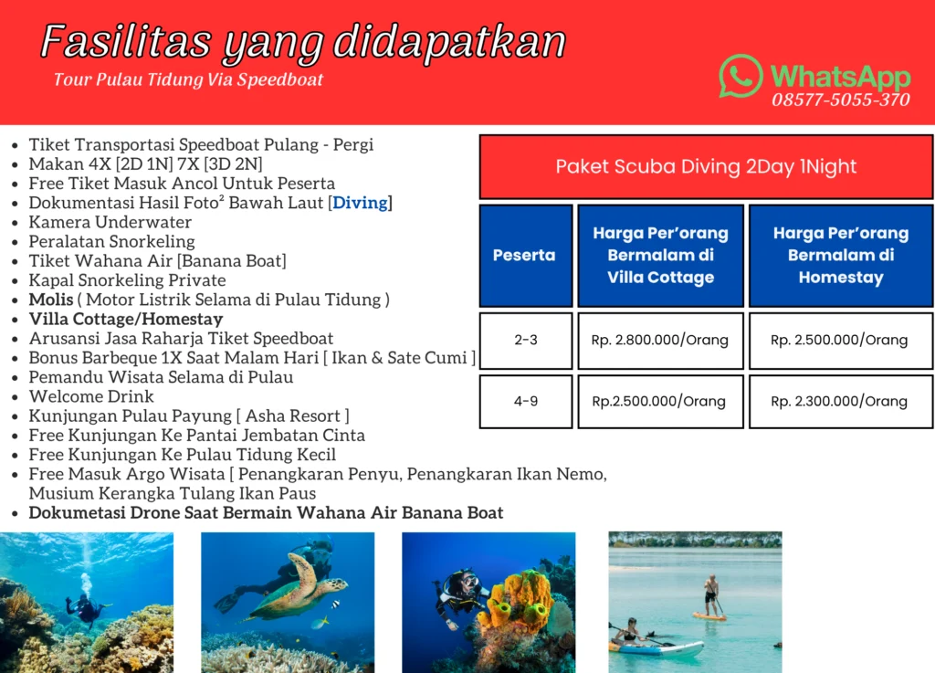 Liburan Kepulau Tidung Kepulauan Seribu Selatan Nikmati Keindahan Wisata Bawah Laut ( Diving ) Kami Memberikan instruktur diving profesional bersertifikat (PADI/SSI) yang melatih, menilai, dan membimbing penyelam, mulai dari tingkat pemula hingga profesional